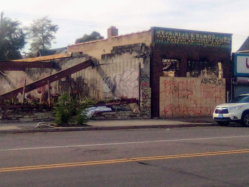 Kitty-corner from the cop shop lay the smoking ruins of an auto parts store. The building was burned to the ground. To anyone familiar with the intersection, the sight of such carnage in the prosaic setting was incomprehensible. My mind struggled to make sense of what my eye saw. Where once there was a building so ordinary and common that I barely noticed it enough to remember it, there now was a smoking pit of black ashes. My eye was constantly driven to that bare spot in the landscape where a building should be just as compulsively as the tongue is driven to explore the new gap when a tooth is lost.